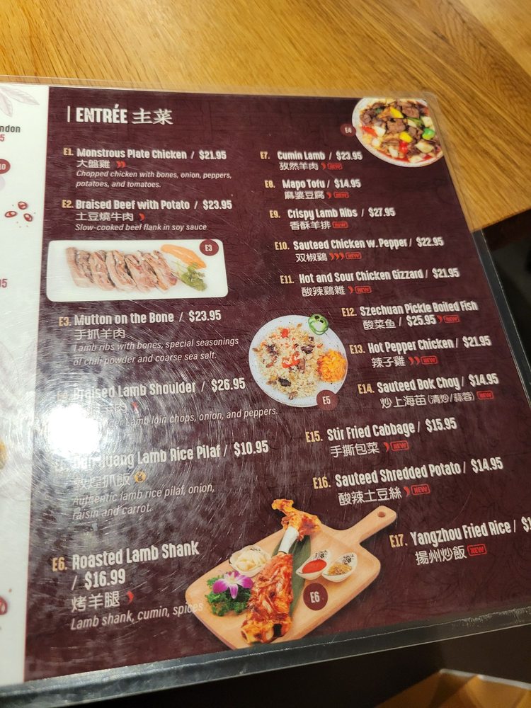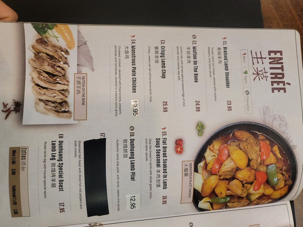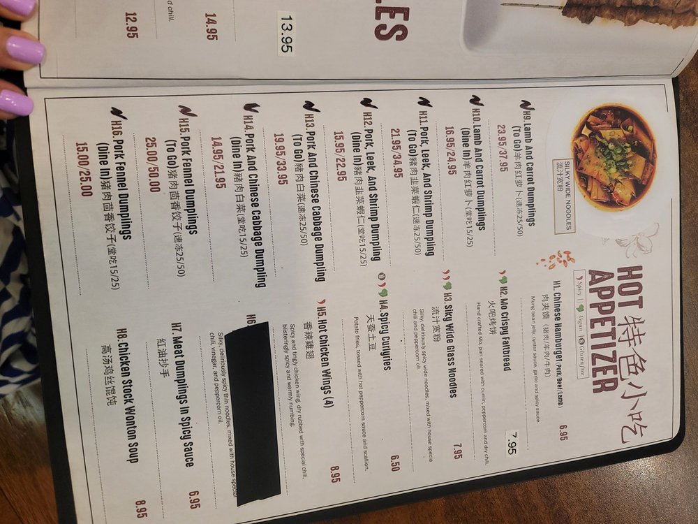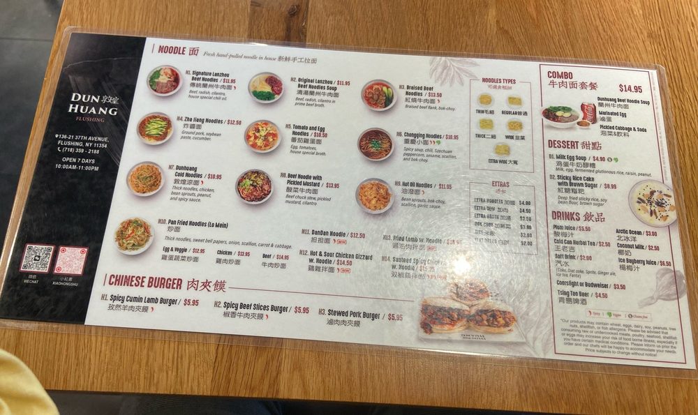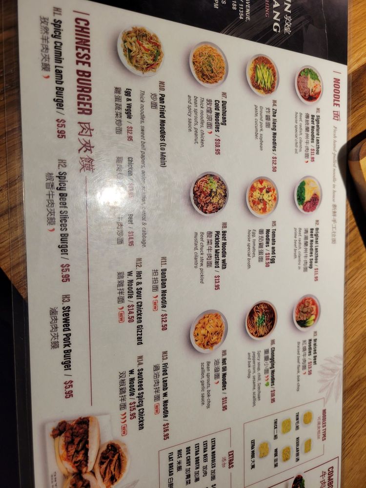 Dunhuang Lanzhou Beef Noodle offers a variety of Chinese dishes with a focus on beef noodles. The menu includes entrees like Monstrous Plate Chicken, Braised Lamb Shoulder, Mutton on the Bone, Braised Beef with Potato, and Dun Huang Lamb Rice Pilaf. Hot appetizers like Lamb Skewers and Mo Crispy Flatbread are available, along with cold appetizers such as Steamed Chicken with Chili Sauce and Multi Spiced Beef with Cilantro. Customers have raved about the braised beef noodle dish and the delectable lamb skewers. The service is excellent, and the atmosphere is clean and inviting. With options for takeout, delivery, and catering, Dunhuang Lanzhou Beef Noodle is a must-visit for those craving authentic Chinese flavors in Flushing, NY.